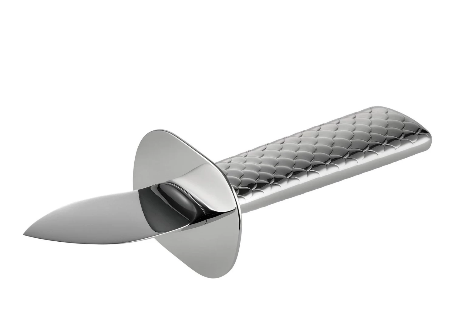 Maak het eten van een verse oester een stuk gemakkelijker met het Alessi oestermes Colombina Fish. Dit mes komt uit de schitterende Colombina Fish bestekserie die speciaal is ontworpen door de designers Doriana en Massimiliano Fuksas. Deze collectie kenmerkt zich door het unieke, decoratieve schubben patroon op de handvaten van het bestek, waardoor het direct duidelijk is dat het gaat om visbestek. Daarnaast is het mes vervaardigd uit sterk en gepolijst 18/10 edelstaal. Door het gebruik van dit materiaal is al het bestek zowel vaatwasser- als krasbestendig. Het Alessi oestermes Colombina Fish is een ware uitblinker op iedere tafel!