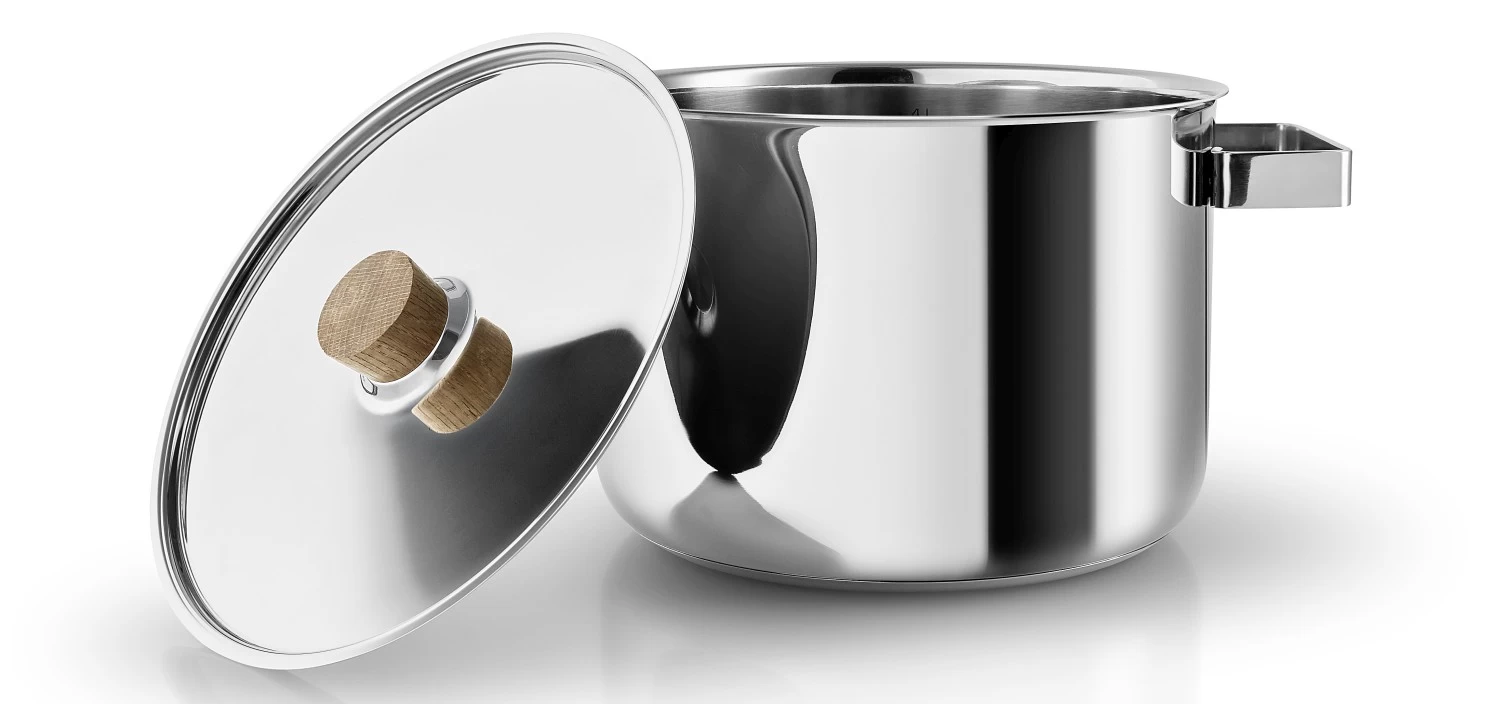 De Eva Solo Nordic Kitchen collectie omvat potten, pannen, keukenhulpjes, thermoskannen en waterkokers. Het heeft een ruw, effen uiterlijk en is gemaakt van lichte materialen, waardoor het ideaal in gebruik is. Deze collectie bestaat uit combinaties van zwart, RVS en eikenhout.