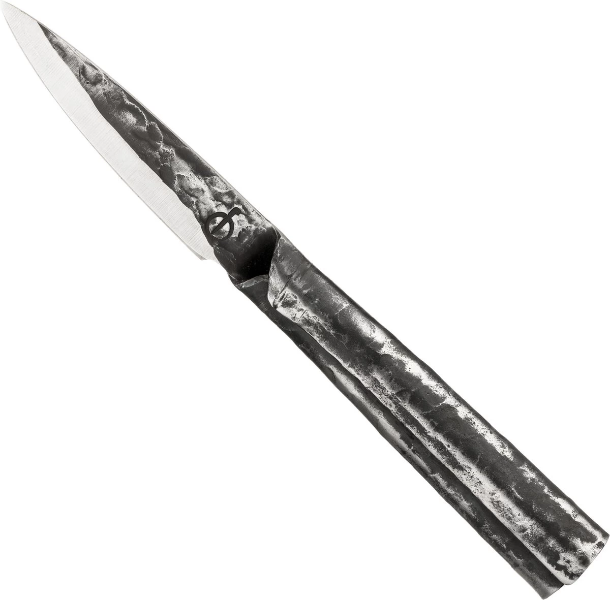 Het Forged Brute schilmesje is de kleinste mes uit de Brute serie. Een licht mesje met een smal lemmet. Dit mesje gebruik je met name om groenten en fruit te schillen en voor kleine, praktische snijhandelingen. De Forged Brute messen zijn vervaardigd van Japans 440C Staal met een hardheid van 58 Rockwell. Alle Forged messen zijn met de hand gesmeed, hebben een lemmet dikte van 2 mm en een snijhoek van 18 graden. Verpakt in een luxe houten kistje, met een garantie van 10 jaar.