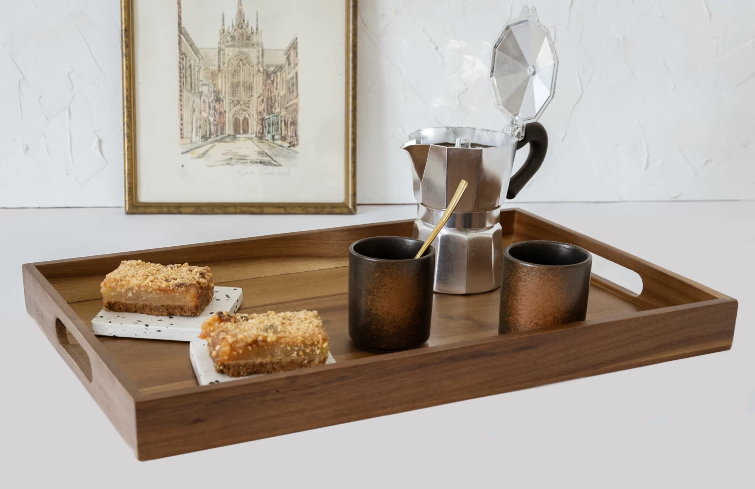 Met het Jay Hill dienblad serveer je eenvoudig hapjes en drankjes of een ontbijtje op bed. Het dienblad heeft een afmeting van 46 x 29 cm. Het dienblad is gemakkelijk te tillen door de opstaande randen met opening. Het dienblad is ook te gebruiken als decoratie, om bijvoorbeeld een aantal kaarsen op te zetten.