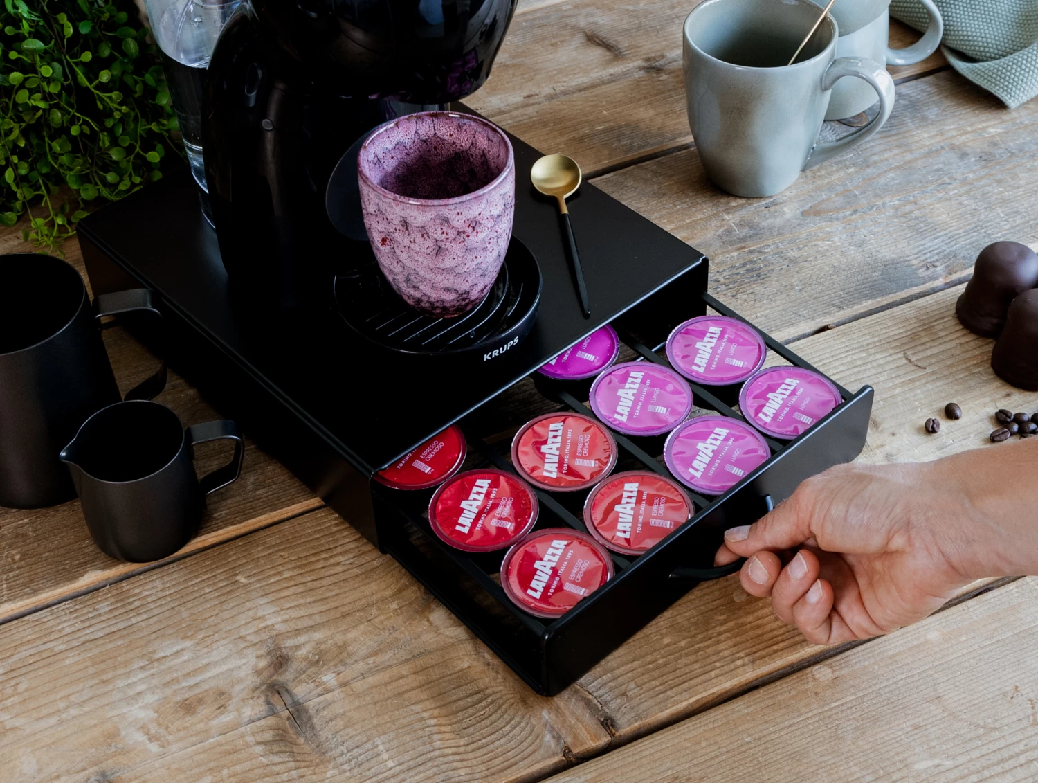 Los slingerende Dolce Gusto © cups zijn verleden tijd met deze Jay Hill Dolce Gusto Cuphouder Lade. De cuphouder is geschikt voor 20 Dolce Gusto cups en is zeer efficiënt. Plaats namelijk je favoriete Dolce Gusto apparaat op deze standaard (max. 10 kilo) en je hebt alles bij elkaar om een heerlijk bakje koffie te zetten. Deze Jay Hill Cuphouder verschuift niet, want hij is voorzien van antislip pootjes, heel handig!
