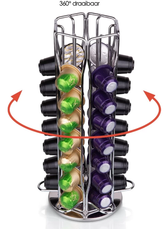 Ben jij een echte Nespresso © fan? Met deze Jay Hill Nespresso Cuphouder heb jij altijd jouw Nespresso koffiecups binnen handbereik. De koffie cuphouder is gemaakt van staaldraad en beschikt over een handig draaiplateau. Dit maakt het mogelijk de cups altijd naar je toe te draaien. Onder het draaiplateau van de Jay Hill Nespresso Cuphouder bevindt zich een viltlaag. Krassen op je keukenblad zijn dus verleden tijd! Geschikt voor 42 cups.