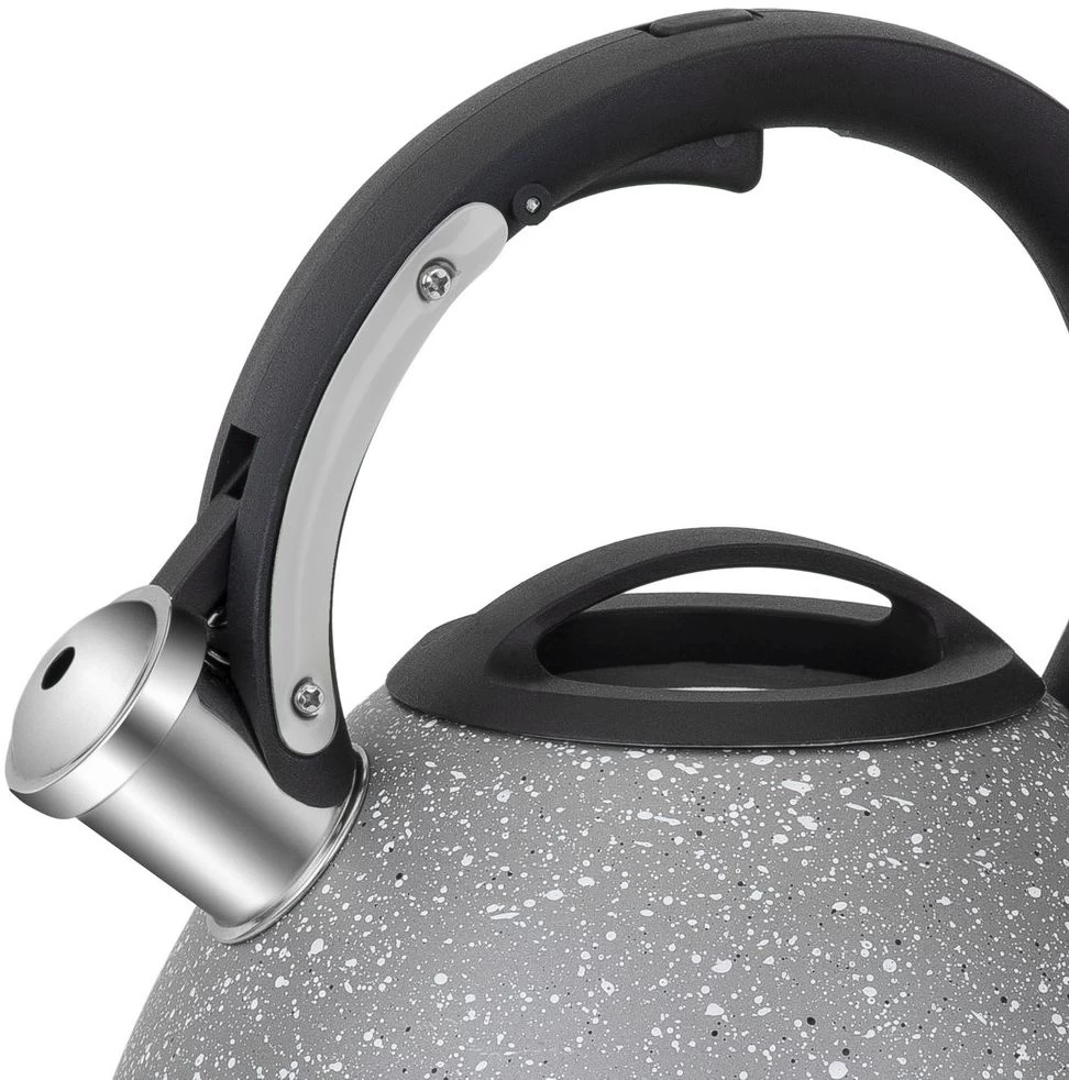 Aangezien je jouw fluitketel dag in dag uit zult gebruiken, wil je er zeker van zijn dat je kunt vertrouwen op een robuuste en betrouwbare partner. Daarom hebben wij ervoor gezorgd dat deze fluitketel is uitgerust met een speciale hittebestendige marmeren oppervlaktecoating, waardoor hij bestand is tegen de dagelijkse slijtage en duurzaamheid gegarandeerd is. Kies voor onze fluitketel en geniet van de gemoedsrust die hij biedt, wetende dat hij is gebouwd om lang mee te gaan.