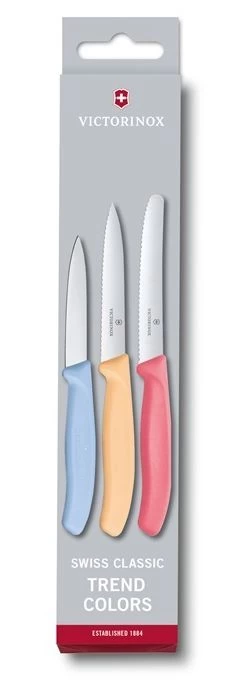 Met deze kleurrijke Victorinox Schilmessenset Pastel 3-Delig haal jij meteen alle nodige mesje in huis voor in de keuken! De set bestaat uit 3 verschillende mesje met allemaal een andere frisse kleur. Daarnaast zijn de mesjes perfect te gebruiken voor dagelijks gebruik en voorzien van een ergonomische handgreep. Na het gebruiken van de schilmesjes kunnen deze eenvoudig worden gereinigd in de vaatwasser. De Victorinox Schilmessenset Pastel 3-Delig bestaat uit: