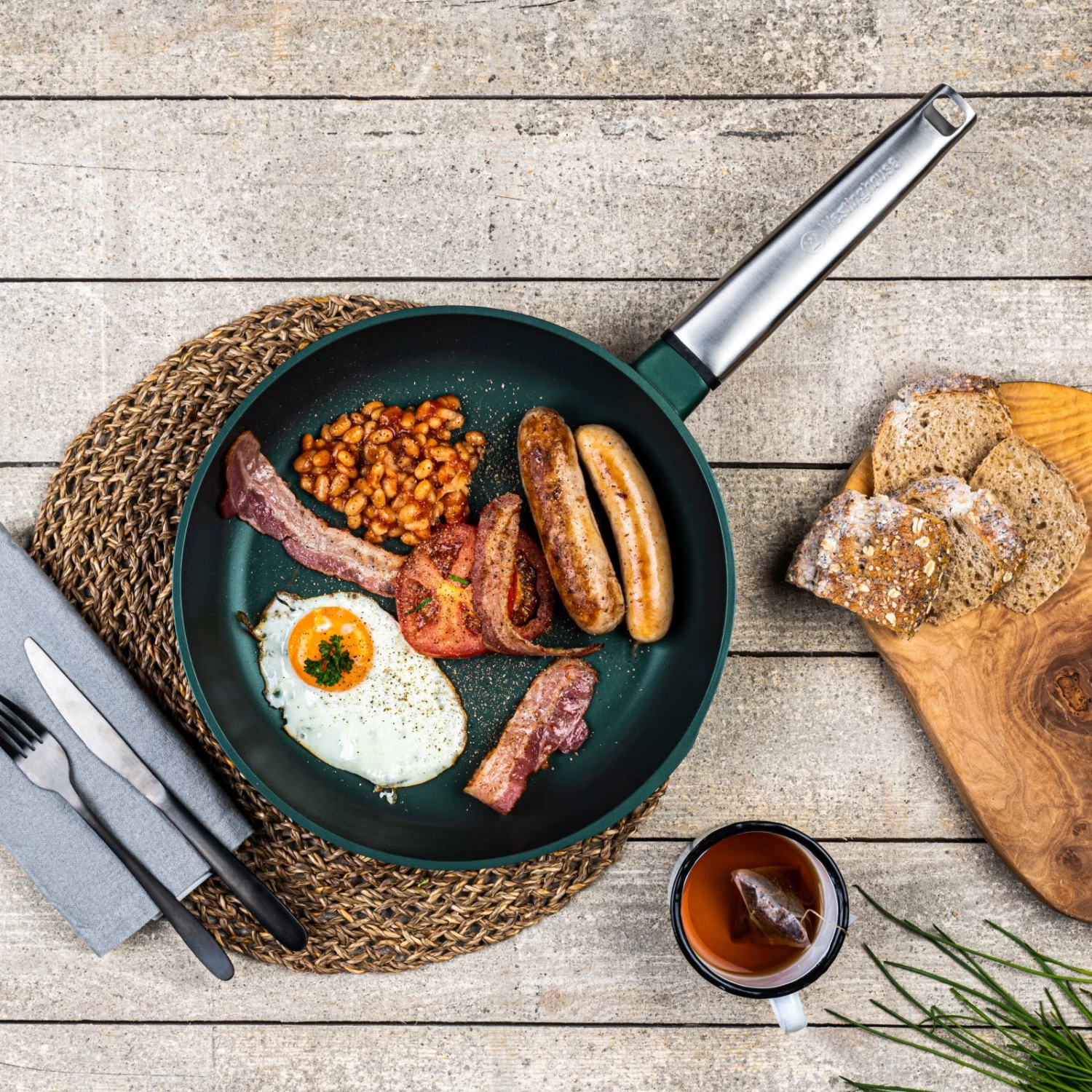 De Westinghouse Performance pannen zijn gemaakt van gegoten aluminium, waardoor ze veel lichter zijn dan de pannen van gietijzer. Hierdoor worden deze pannen drie keer zo snel warm als gietijzeren pannen en zijn ze veel makkelijker te verplaatsen van kast naar fornuis. Daarnaast zijn de pannen geschikt voor alle fornuizen en ovens!